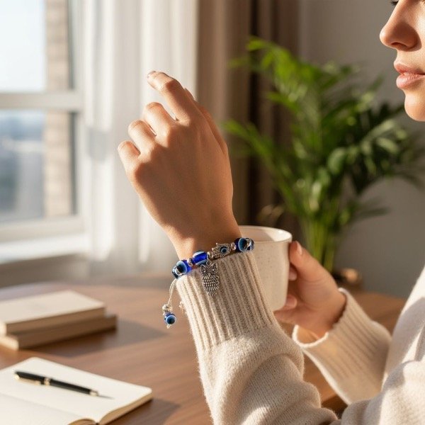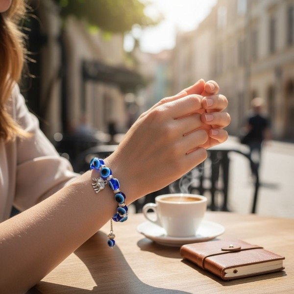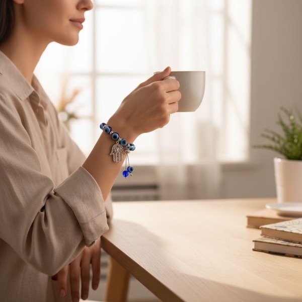 Pulsera elástica de Ojo Turco con dijes de protección.