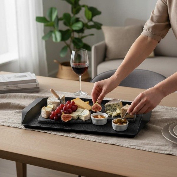 BANDEJA XL FAST FOOD CON ASA PLÁSTICA 13X30 CM