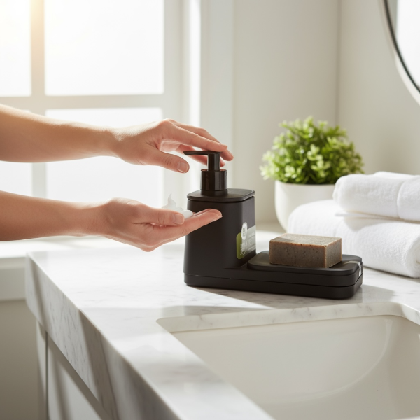 DISPENSER ORGANIZADOR DE COCINA/BAÑO PREMIUM CON BANDEJA ESCURRIDORA 10X18X15 CM