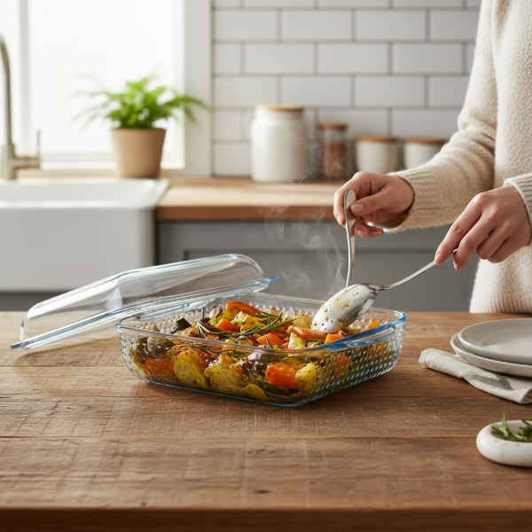 FUENTE CON TAPA CUADRADA VIDRIO HORNO, MICROONDAS, LAVAVAJILLAS 21X21X5 SURTIDO