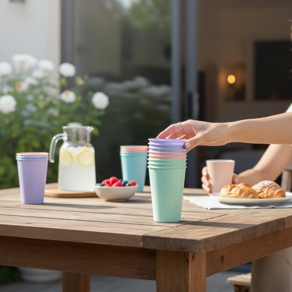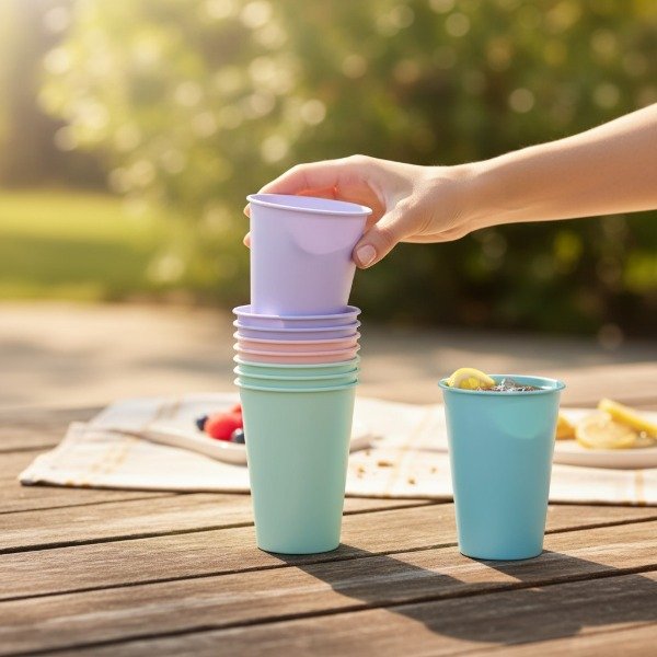 SET DE 10 VASOS REUTILIZABLES POLIPROPILENO COLOR PASTEL SURTIDO 500CC