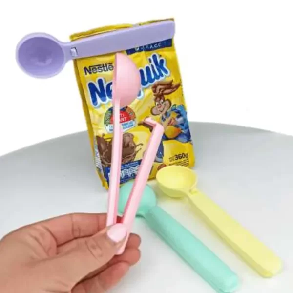 SET DE CUATRO CUCHARITAS CON CIERRA BOLSA INCORPORADO COLORES SURTIDOS EN CAJITA