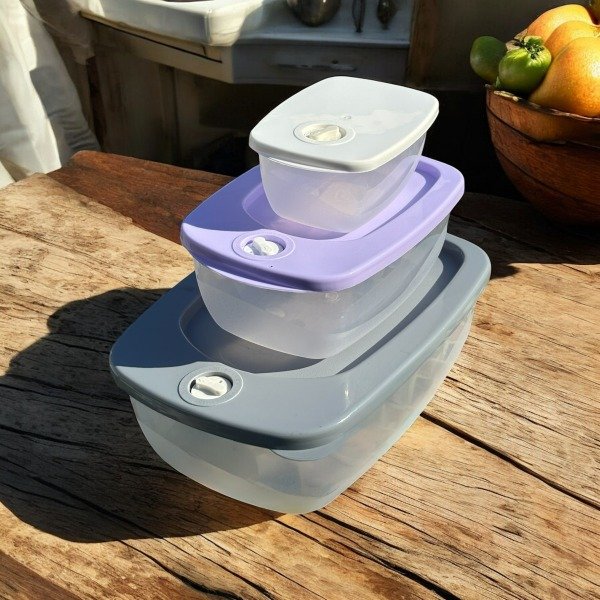 SET DE 3 HERMETICOS RECTANGULARES CON FECHADOR 320 ML, 600 ML, 1.4 L SURTIDO