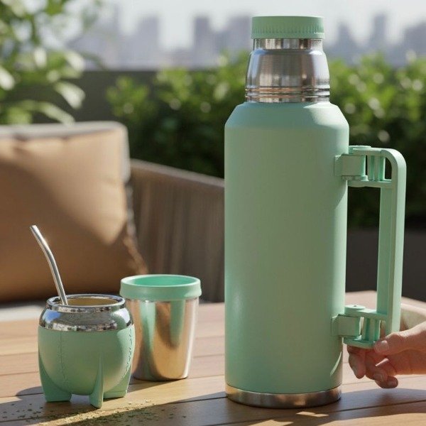 SET MATERO PAMPA: TERMO ACERO 1 LITRO + MATE + BOMBILLA I
