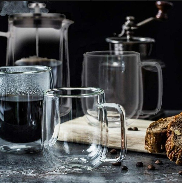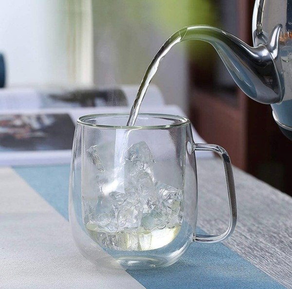 TAZA DOBLE VIDRIO 250 CC CON ASA AGUA CAFÉ INFUSIONES