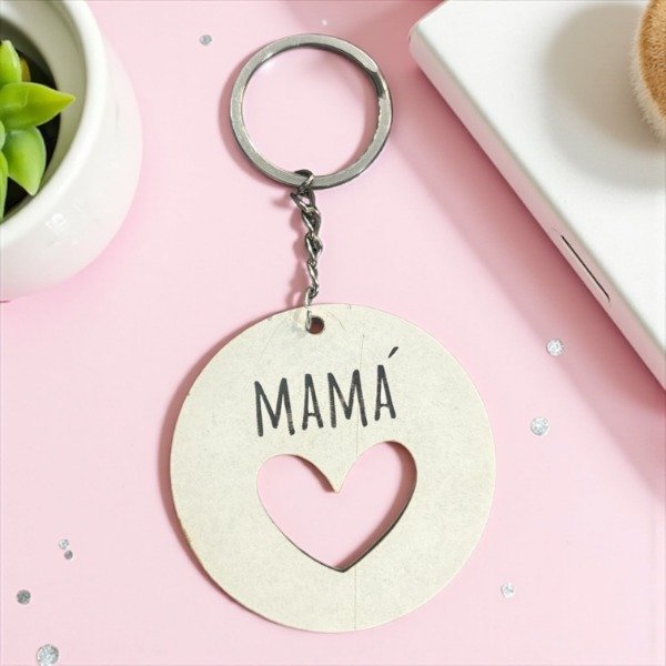 LLAVERO FIBROFÁCIL REDONDO "MAMÁ" CORAZÓN GRABADO