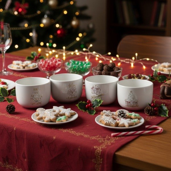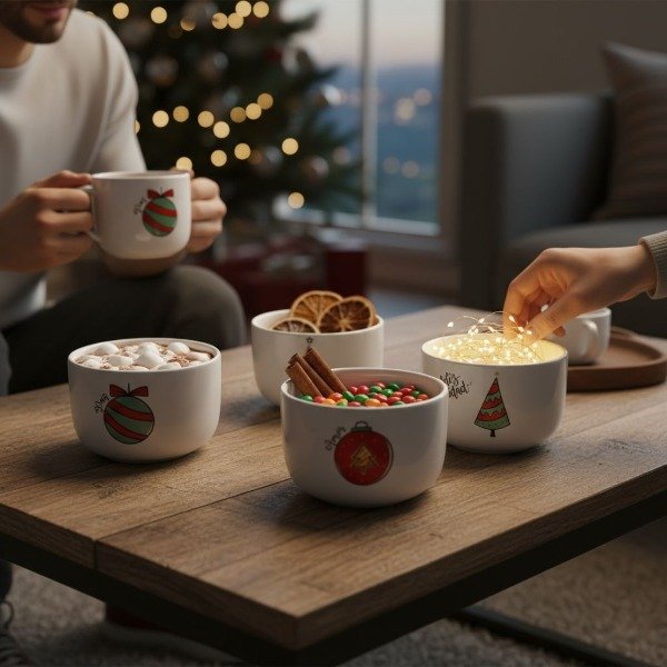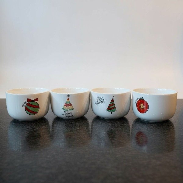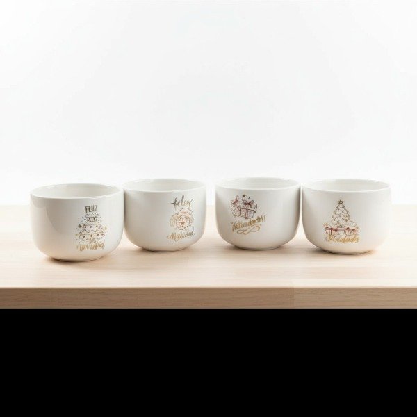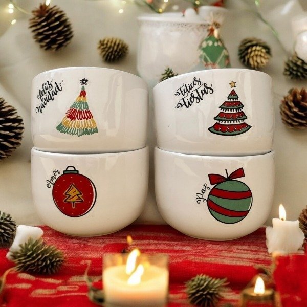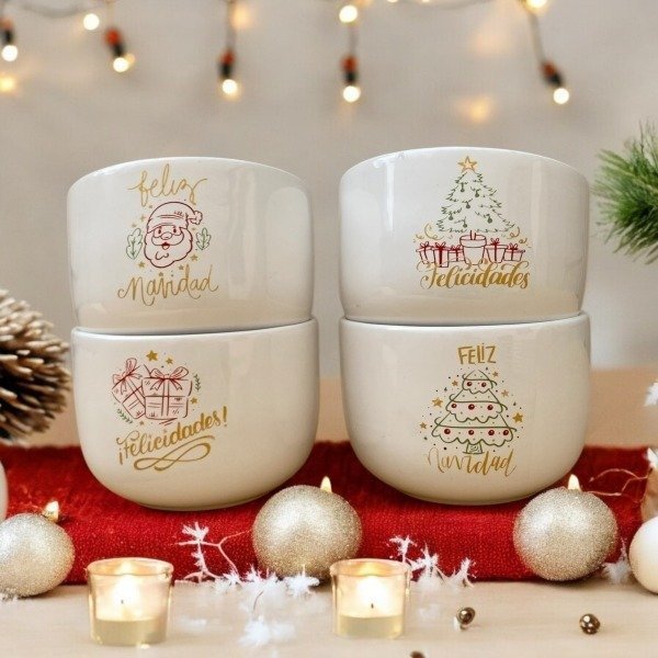 SET 4 CUENCOS NAVIDEÑOS BLANCOS EXTRA GRANDES DE CERÁMICA 700 CC EN CAJA