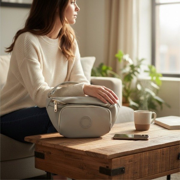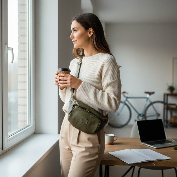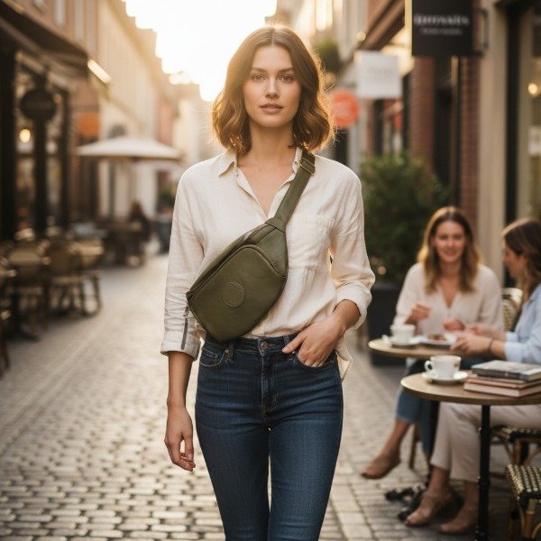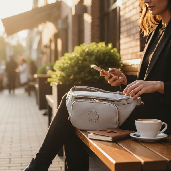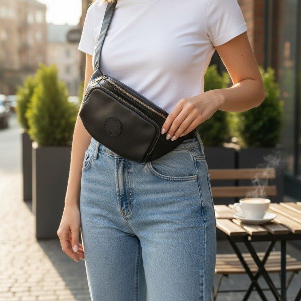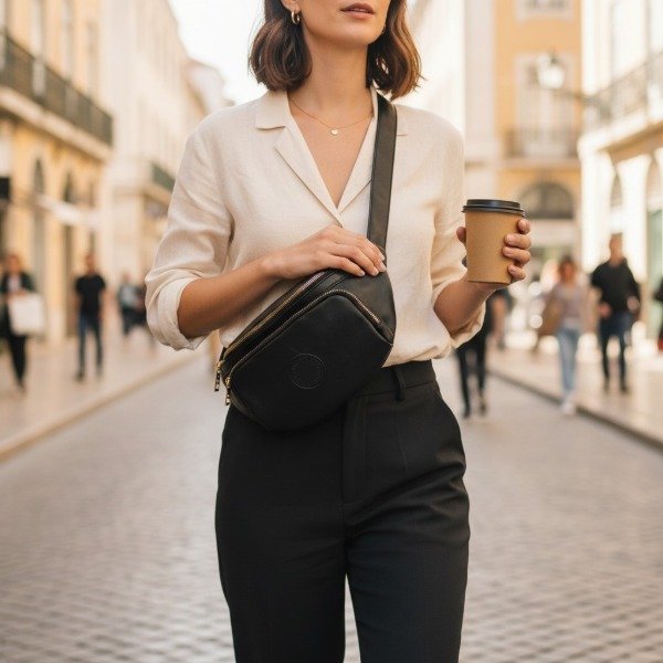 RIÑONERA SIMIL CUERO LISA CON AVÍOS EN DORADO Y TIRA AJUSTABLE